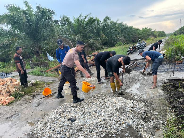 Di Kecamatan Sungai Apit, Kapolsek Sungai Apit bersama personel Satuan Tugas Jembatan Merah Putih Presisi Tahap II turun langsung ke lapangan sejak pukul 08.00 WIB. Kegiatan dilakukan secara gotong royong dengan melibatkan masyarakat setempat dan tenaga tukang profesional. Pengerjaan difokuskan pada pemasangan mal atau cetakan sementara serta pengecoran lantai jembatan.